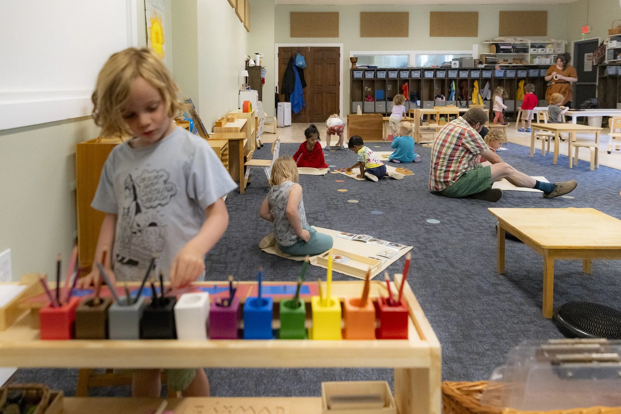 The children learn to read and write with a variety of Montessori-based, phonetic, and whole language materials. For math, the Montessori method of manipulation of concrete and symbolic materials with built-in control of errors leads the children towards abstraction in their studies of the four operations and memorization of basic Math facts.